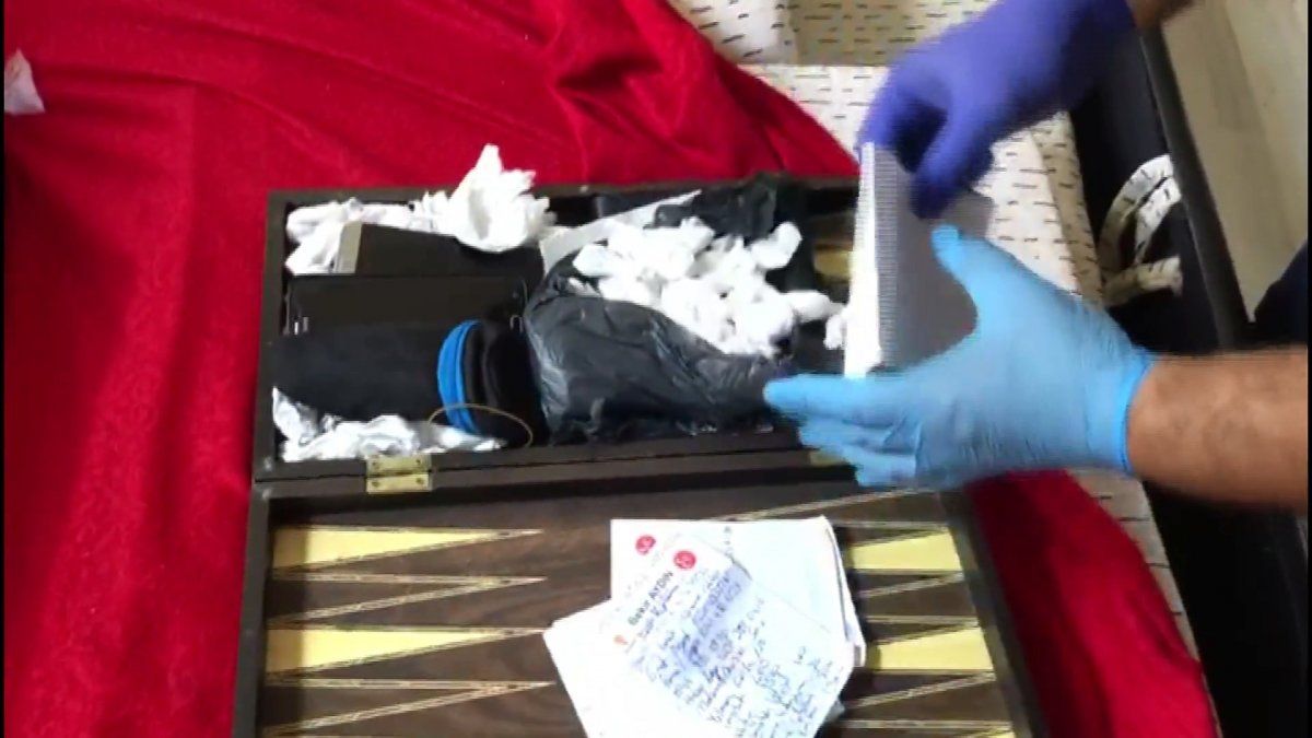 Aramalar sonucu tavla içine gizlenen ve satış için 58 paket yapılmış 122 gram bonzai, 20 paket hazırlanan bir miktar metamfetamin, 4 ecstasy tablet ile 1 ruhsatsız tabanca ve 19 fişek ele geçirildi.