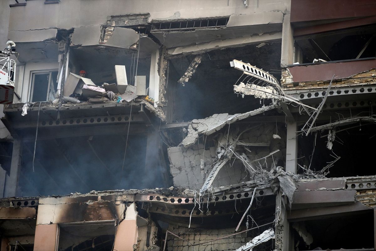 İsrail’in saldırısında İran’ın başkenti Tahran’daki bir apartmanda çok sayıda dairenin ve apartmanın cephesinin zarar gördüğü kameralara yansıdı.