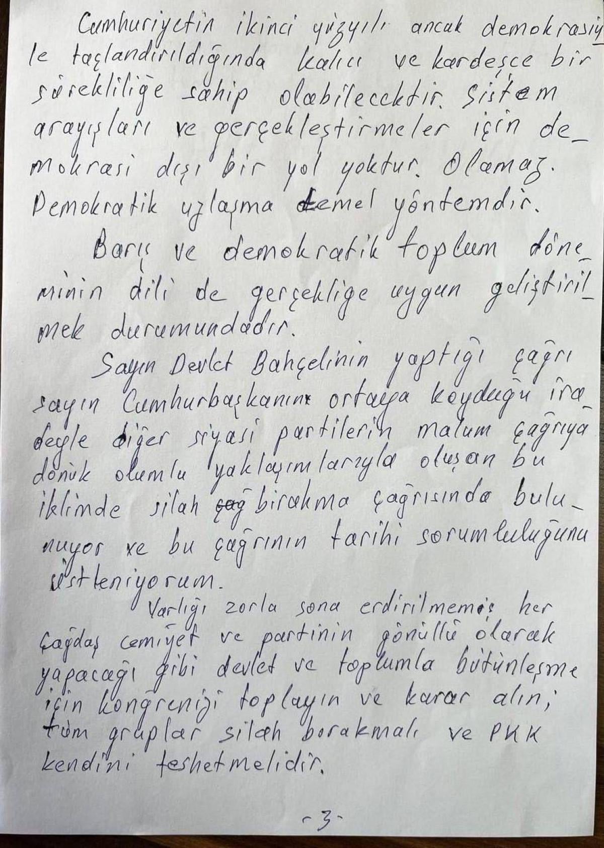 "Abdullah Öcalan PKK'ya dağılma çağrısı yaptı."