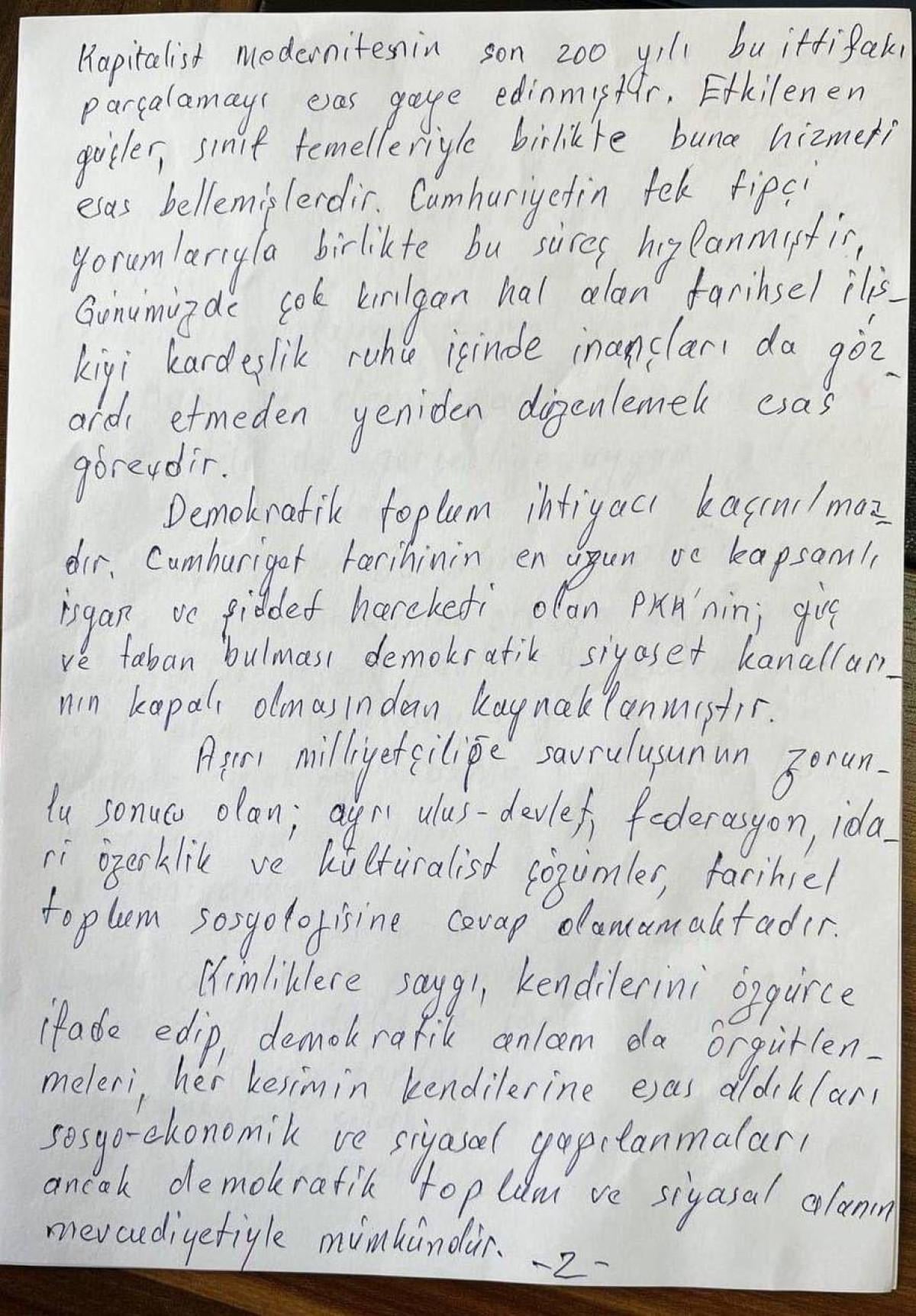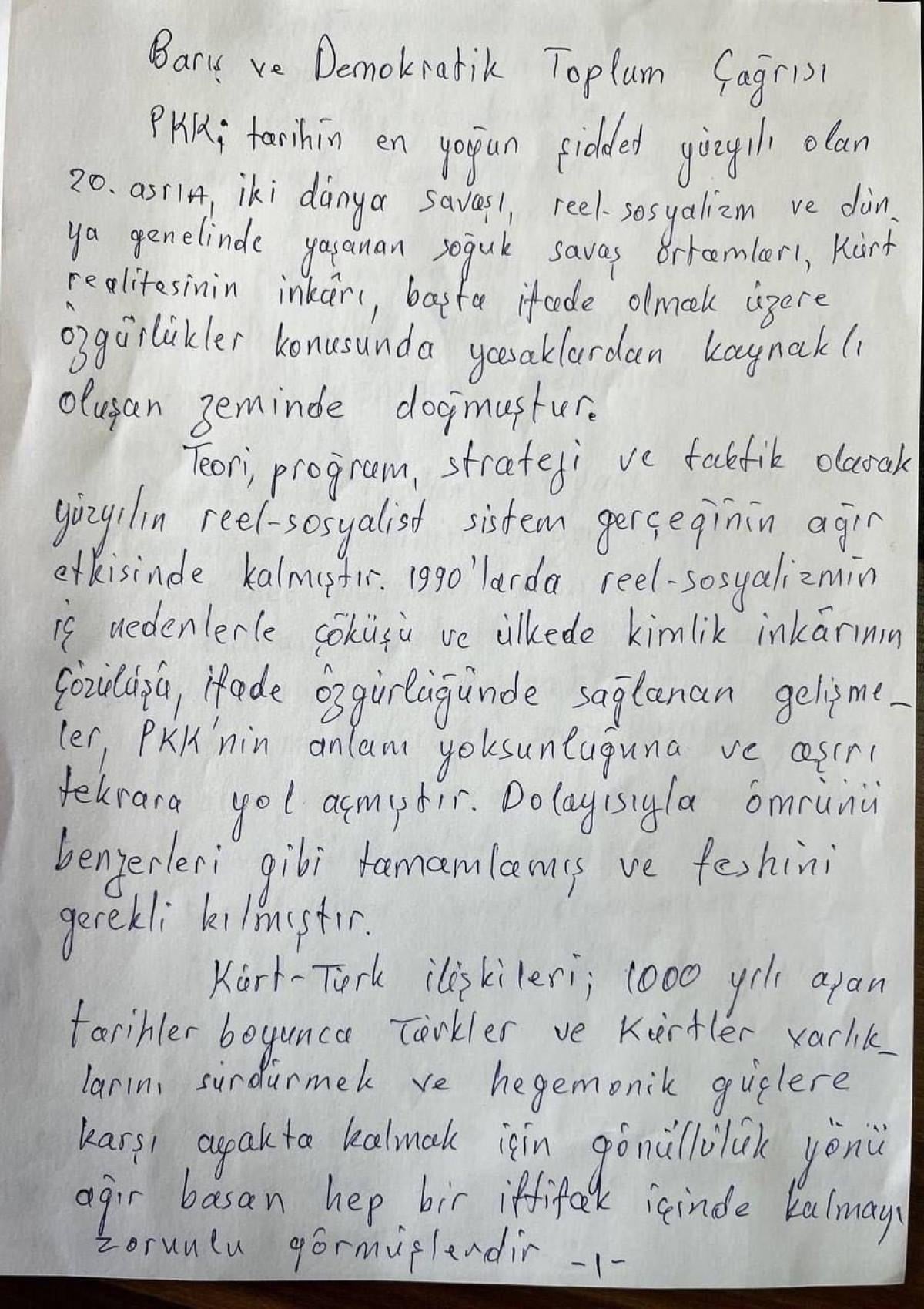 Görüşme sonrası İstanbul'a dönen heyet, Öcalan’ın kendi yazdığı bildirisini kamuoyuna sundu.