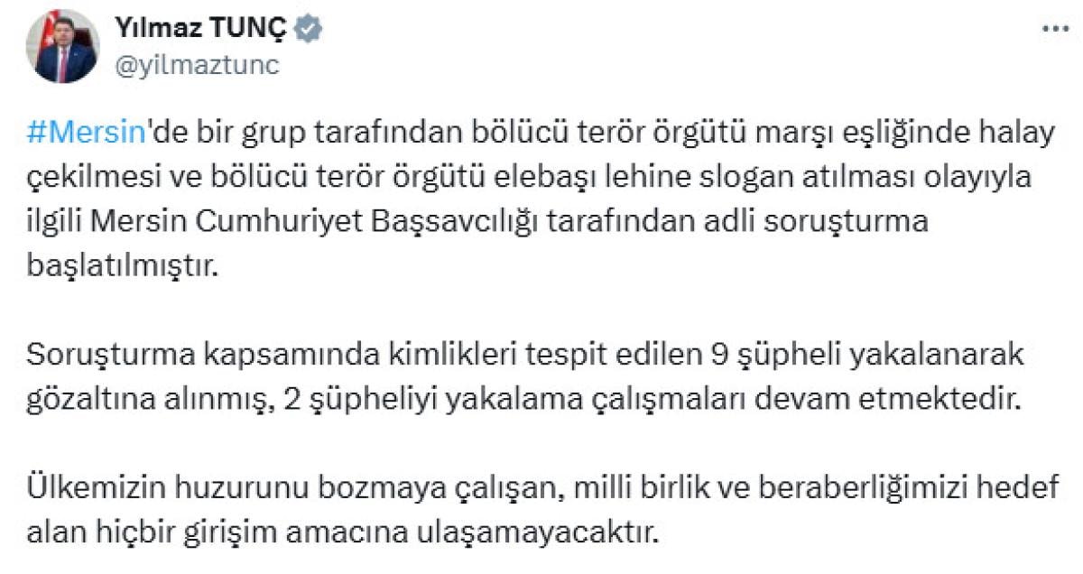 Sosyal medya hesabından açıklama yapan Bakan Tunç, şu ifadeleri kullandı: