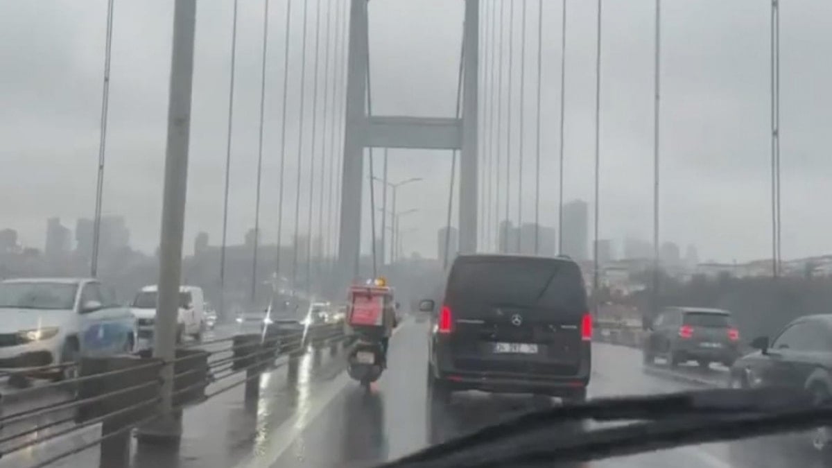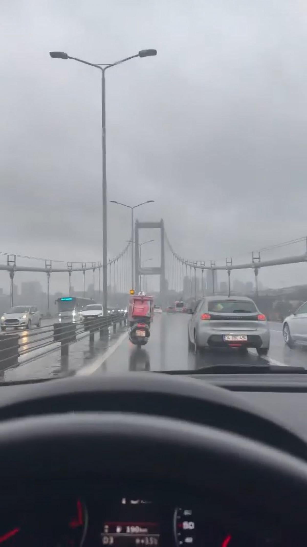 Köprüden geçmek isteyen motosikletliler şiddetli rüzgar nedeniyle zor anlar yaşadı. Düşmemek için büyük çaba sarf eden moto kuryelere ise sürücüler yardım etti.