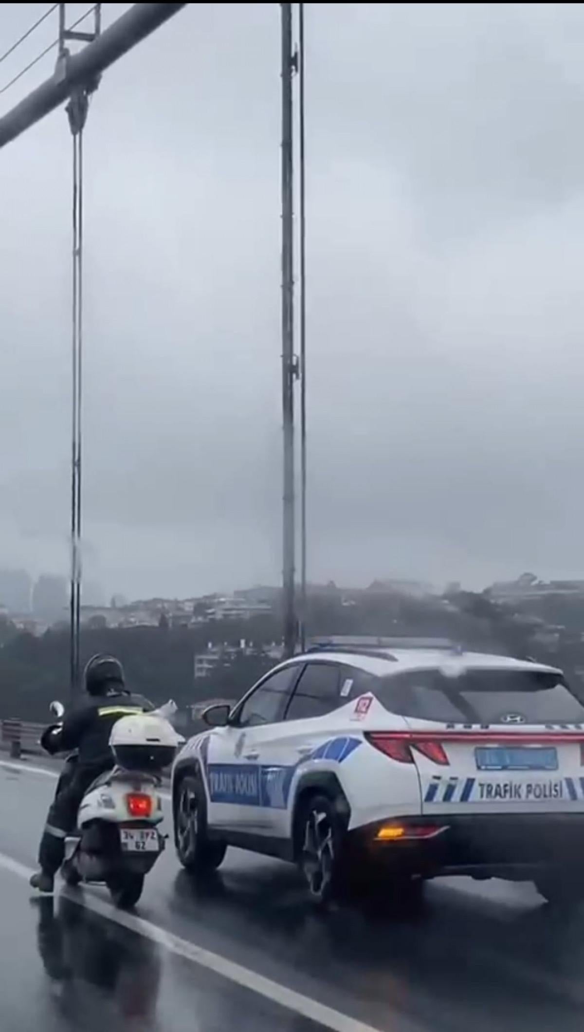 Avrupa Yakası'ndan Anadolu Yakası'na geçen motosikletlilere, trafik polisi aracı ve diğer araçlar uzun bir süre kalkan oldu.