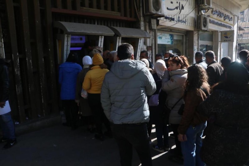 Suriye'de 61 yıllık Baas rejiminin devrilmesinin ardından 2 aylık maaşları hesaplarına yatan devlet personelleri ATM'lere akın etti.