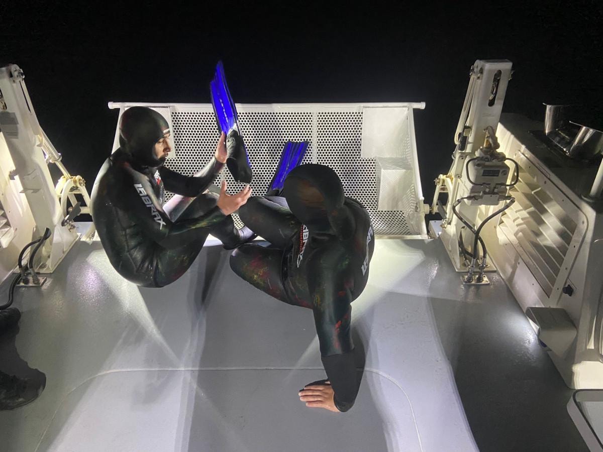 Çalışma gerçekleştiren Sahil Güvenlik ekipleri, dalgıç kıyafetleri ve paletlerini giyerek Yunan adalarına yüzerek geçmeye çalışan 2 düzensiz göçmeni yakaladı.