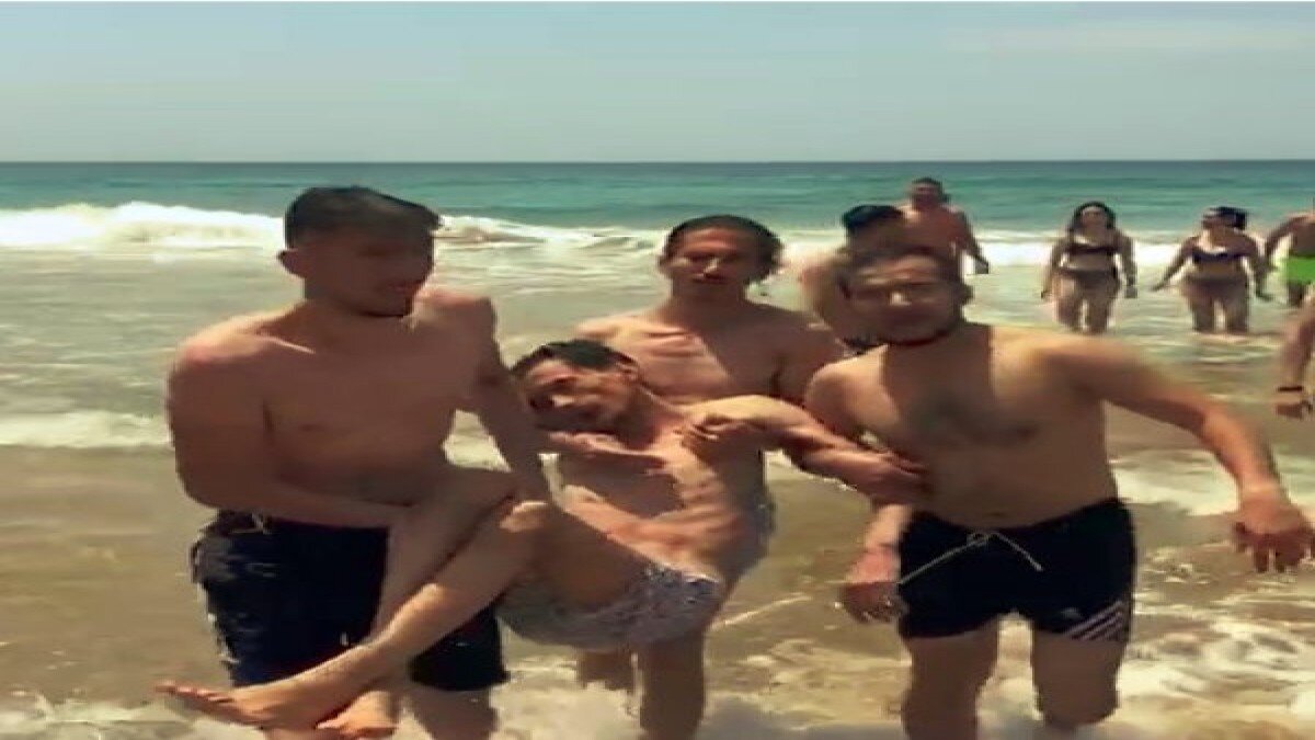 Diğer taraftan, yine dalgaların arasında su yutan başka bir genç de arkadaşları tarafından sahile çıkartıldı.
