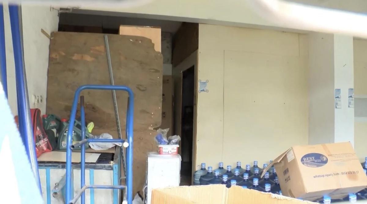 Oturma odasında televizyon, kamera, var arka tarafta oda yaptırmış ne olduğunu anlamadım. Tahtalık gibi bir yerler var, bölme yaptırmış. Bunu bizi dışardan insanlar görmesin diye yaptırmış. Buranın önden ve arkadan iki kapısı bulunmaktaydı. Bu dükkanda bilgisayarı vardı, evde canım sıkılıyordu, bilgisayarla oynamak için su dükkanına gidiyorduk.
