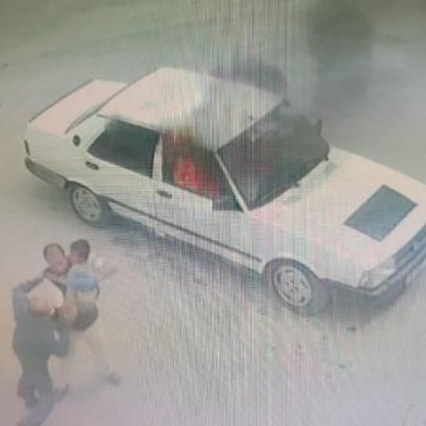 Bu sırada otomobilin motor kısmından dumanlar çıkmaya başladı. Kısa sürede alev alan otomobilin içindeki çocuğun sesini duyan tesis sahibi Asım Akkoyun, çocuğu kurtardı.