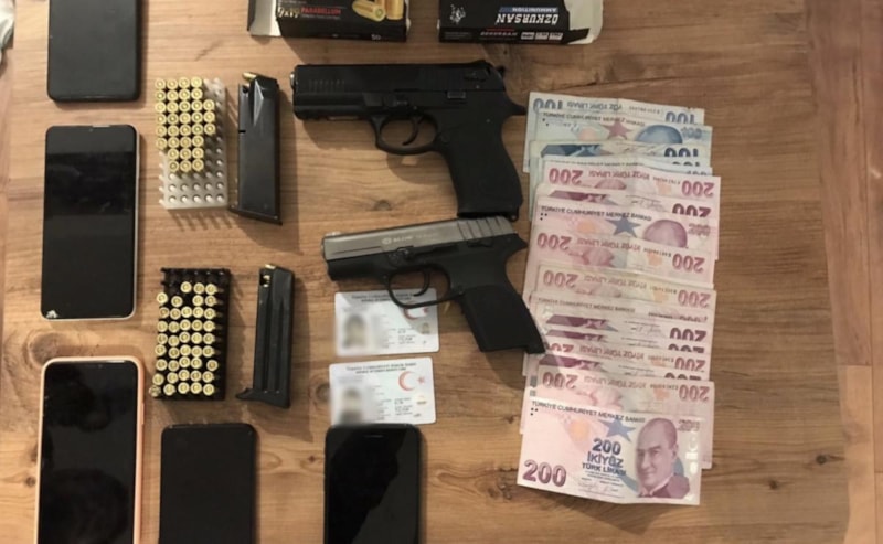 Şüphelilerin adreslerinde yapılan aramalarda, 4 ruhsatsız silah ve silahlara ait çok sayıda mermi, uyuşturucu madde, kullanıma hazır halde sim kart ve çok sayıda dijital materyal ele geçirildi.
