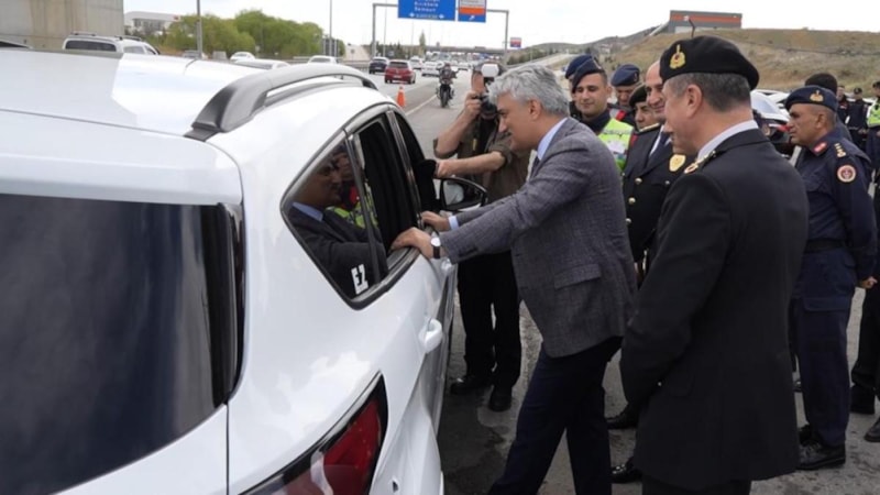 Trafik denetimlerine katılan Vali Makas, durdurulan araçlardaki vatandaşları emniyet kemeri ve güvenli yolculuk konusunda uyararak, iyi bayramlar diledi.