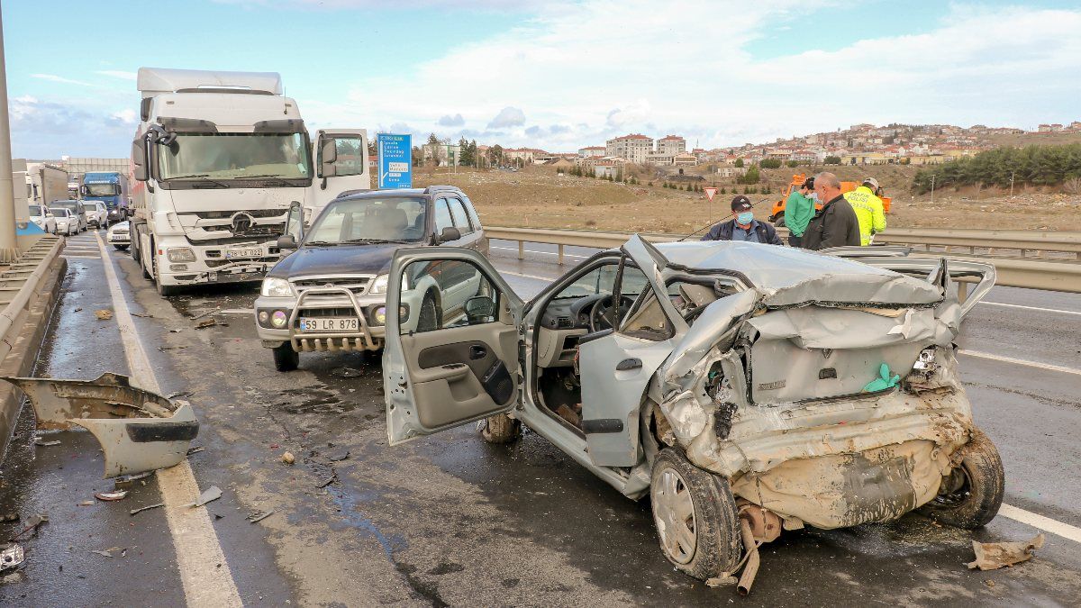 Çarpmanın etkisiyle savrulan araç, önünde giden 61 yaşındaki E.İ. yönetimindeki cipe çarptı.