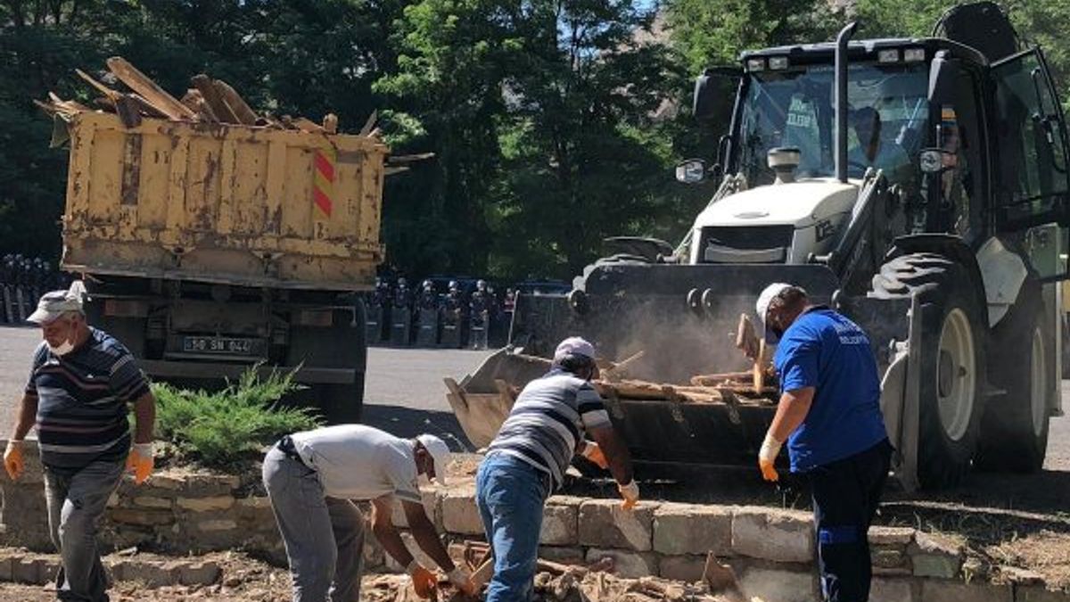 Jandarma ekipleri, yıkım işleminden önce bölgede geniş güvenlik önlemleri aldı.