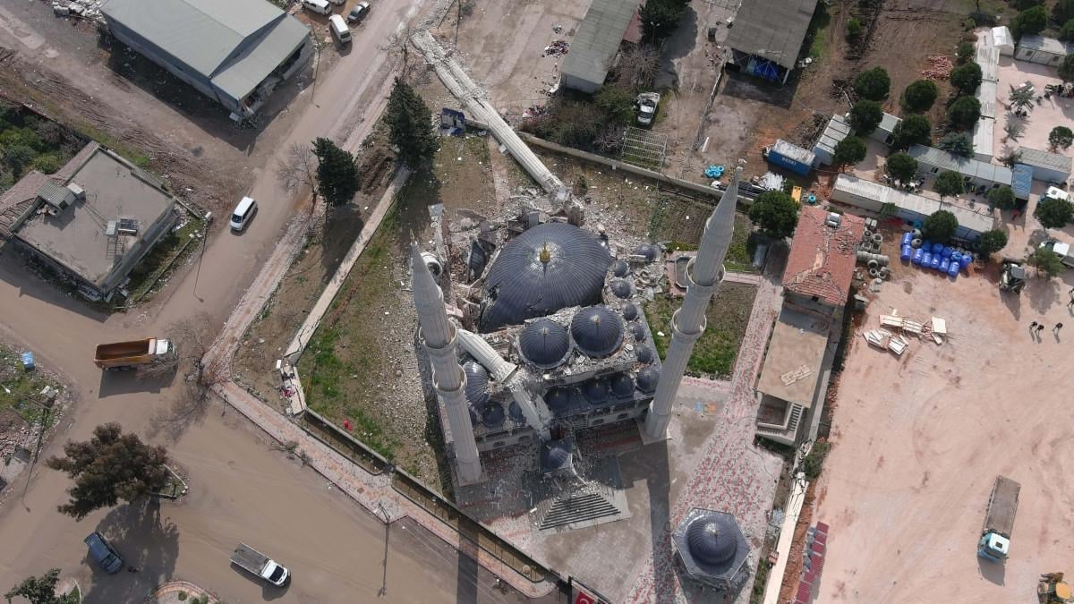 Bunun yanı sıra ağır hasarlı çok sayıda binanın da yıkıldığı görüldü. 2. depremin vurduğu Antakya kent merkezi havadan görüntülendi.