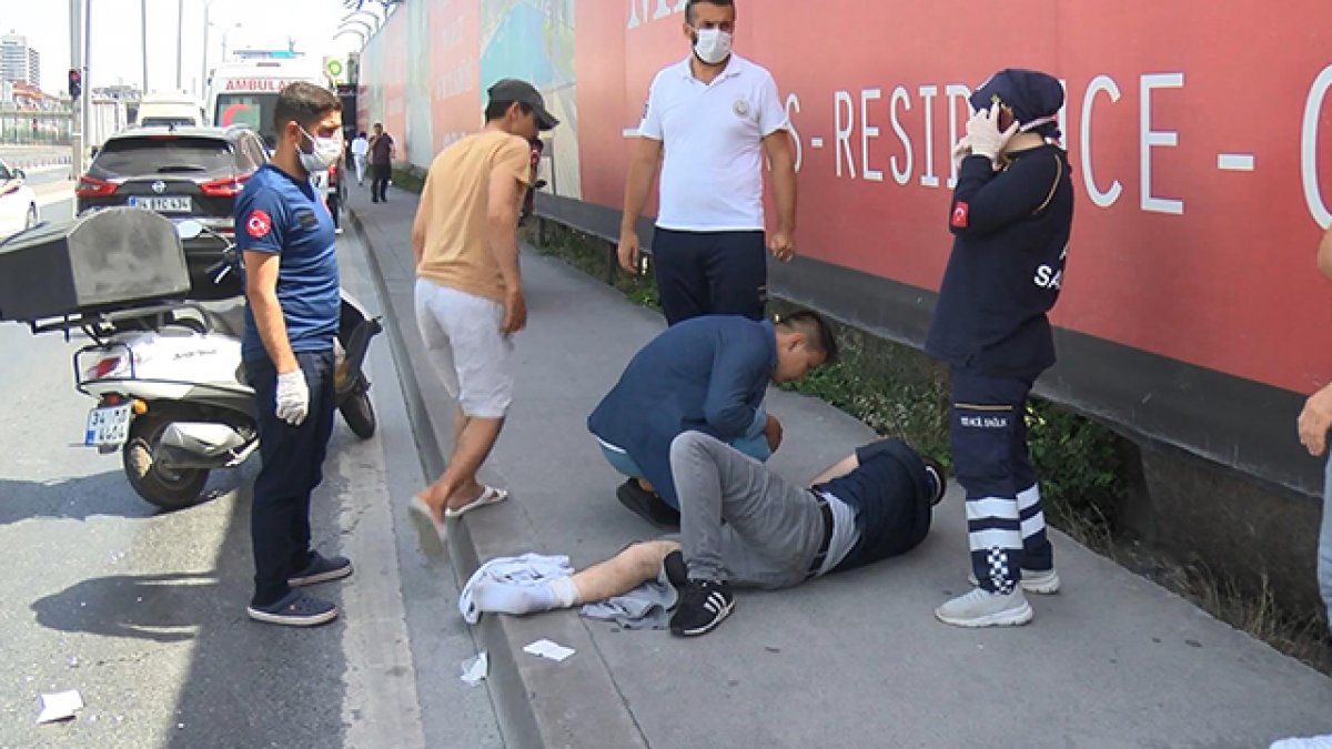 Kazada yine ismi öğrenilemeyen motosiklet sürücüsünün ayağı kırılırken, yaralıyı gören otomobil sürücüsü ise kaçtı.