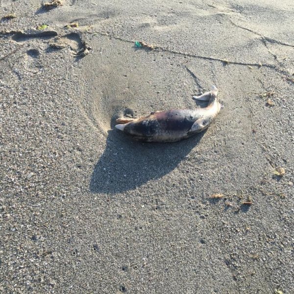 Türkeli ilçesi Güzelkent köyü sahilinde akşam saatlerinde gezen vatandaşlar kıyıya vuran ölü yunusa rastladı.