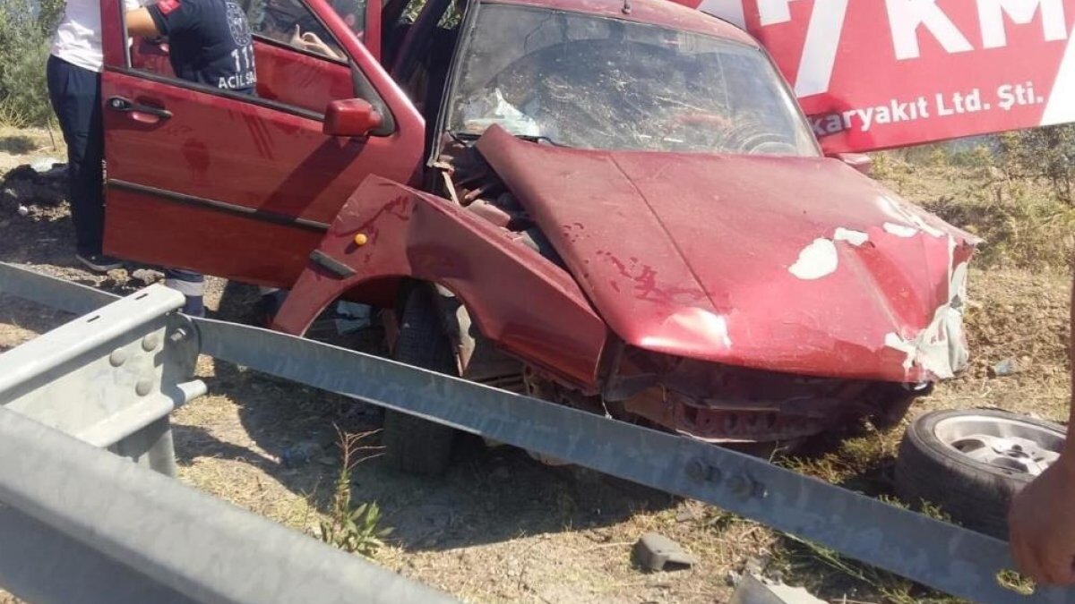 Aydın’ın Çine ilçesi Eskiçine Mahallesi’nde, Muğla istikametine gitmek olan otomobil, sürücüsünün direksiyon hakimiyetini kaybetmesi ile bariyerlere çarptı. Bariyerlere çarpan otomobil, yolun dışına savruldu.