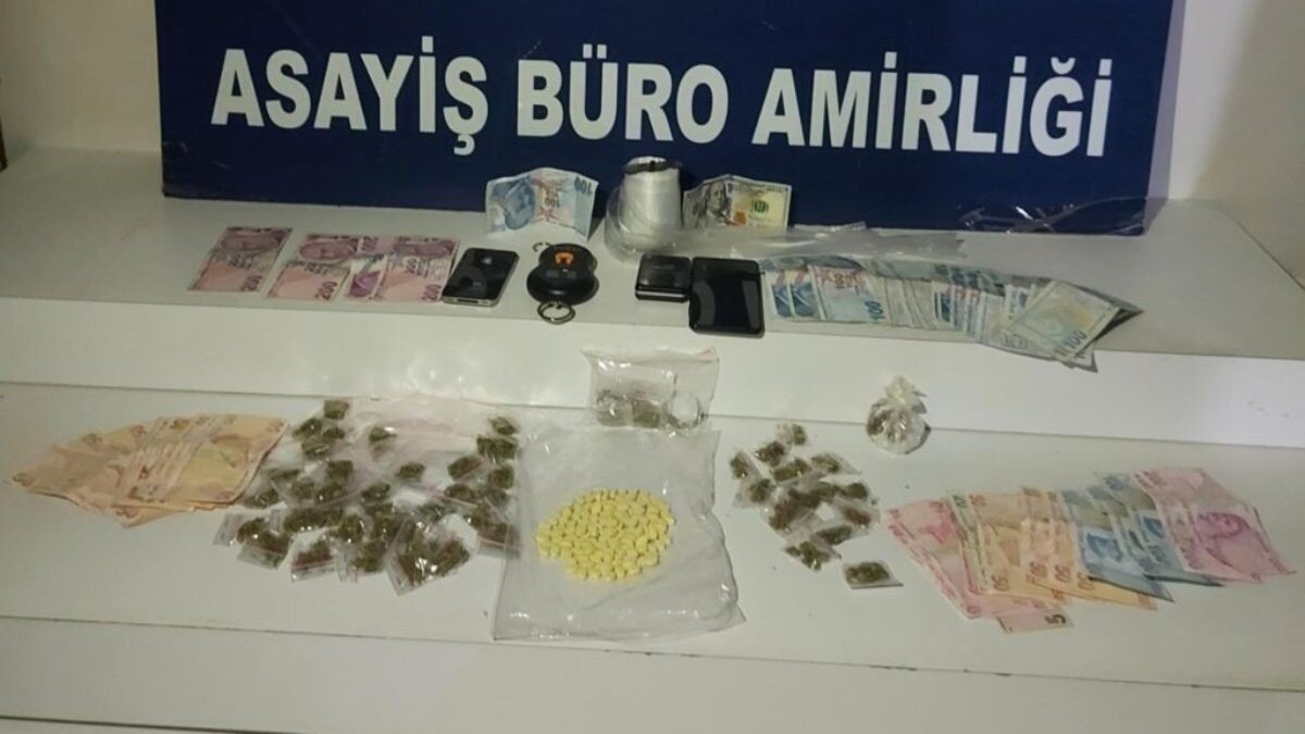 Evdeki aramalarda; salon ve yatak odasında 35 parça 25 gram gelen marıjuana, 15 parça 16 gram gelen marıhuana, 3 parça halinde 9 gram gelen metanfetamin, 1 paça halinde poşet içerisinde 2.8 gram gelen marıhuana, 130 adet 58 gram gelen extazi, uyuşturucu ve uyarıcı madde tartımında kullanılan hassas terazi ele geçirildi. Şüpheli Erol K.'nin üst aramasında ise 5 adet 3,2 gram gelen marıhuana, 2,15 gram gelen metanfetamin ve uyuşturucu madde ticaretinden elde ettiğini düşünülen 4 bin 800 lira ele geçirildi.