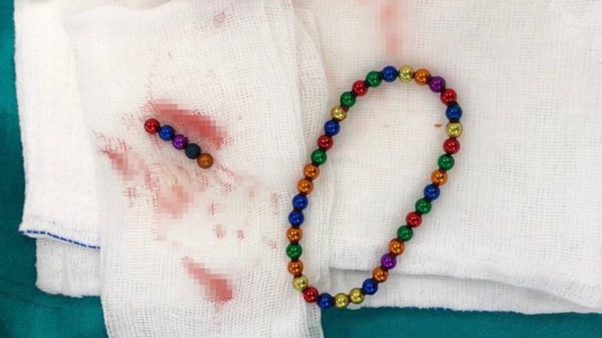 Çocuğun, haberi olmadan 'neodyum' adı verilen stres bilyeleri olarak da bilinen 42 adet mıknatıs topu yuttuğu belirlendi.