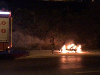 Olay yerine gelen itfaiye ve polis ekiplerinin ikna edemediği Püçkün, karayolunun ortasında oturarak alevler içinde kalan motosikletinin yanışını izledi, üstüne bir de sigara yaktı.