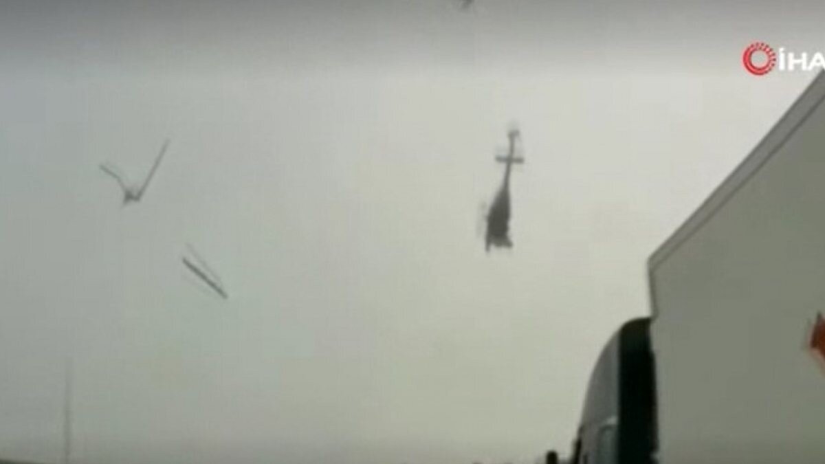 Savrularak düşen helikopter, bir anda alev topuna döndü.