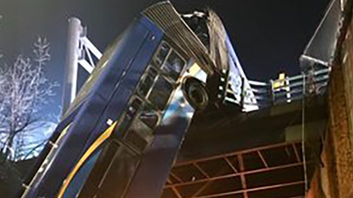Sürücü, aracı kontrol etmeye çalışırken otobüsün ön kısmının köprüden sarkarken, arka kısmı ise köprü üzerinde kaldı.