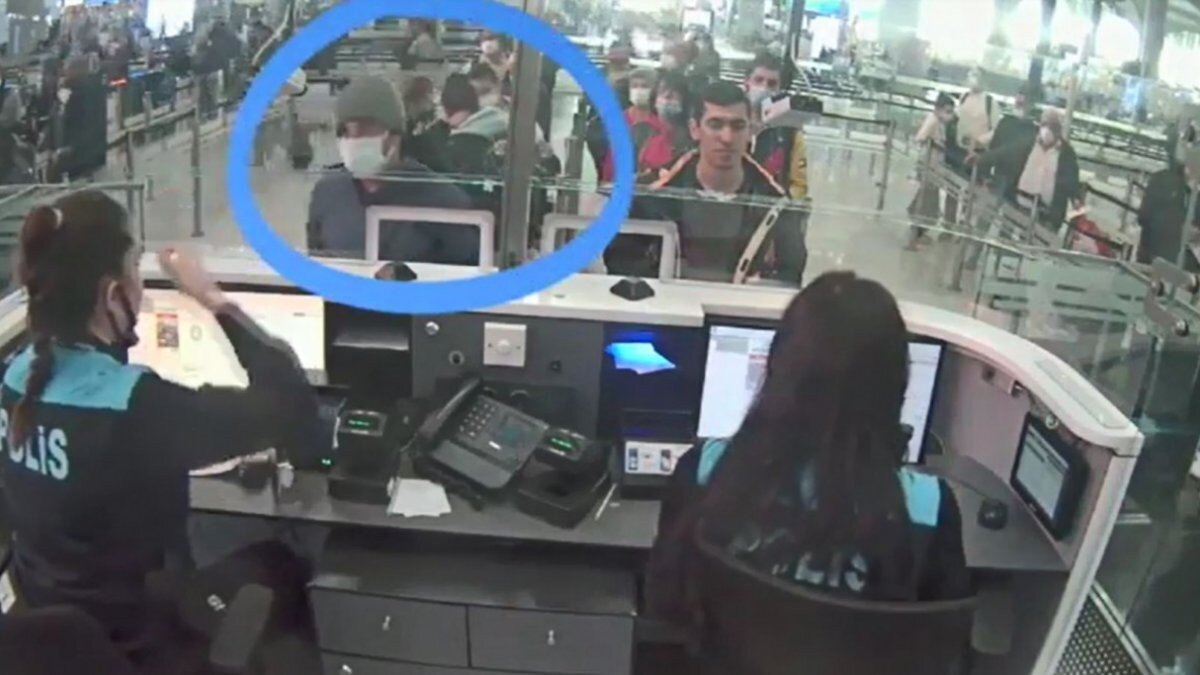 İstanbul Havalimanı Şube Müdürlüğü ekiplerinin güvenlik kamerasına takılan Suriyeli yolcu bir süre daha orada bekledi.