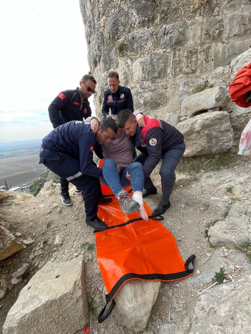 Bölgede tesadüfen bulunan 2 AFAD ekibi ve itfaiyecilerin müdahalesiyle ayağı sargıya alınan Nally, kaleden indirilip sağlıkçılara teslim edildi.
