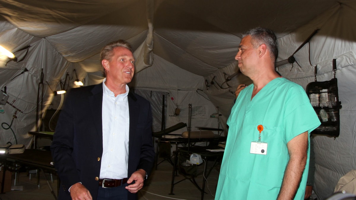 Bugün burada bu sahra hastanesinin anahtar teslimini yapacağız. Türkiye Cumhuriyeti Sağlık Bakanlığı yetkililerine teslim ediyoruz. ABD ordusu tarafından bu tesis sadece 5 gün içerisinde kuruldu. Hatta şunu fark ettim ki; daha devir teslim işi gerçekleşmeden, anahtarları kendilerine teslim etmeden 300 hastanın burada tedavisi gerçekleşmiş.