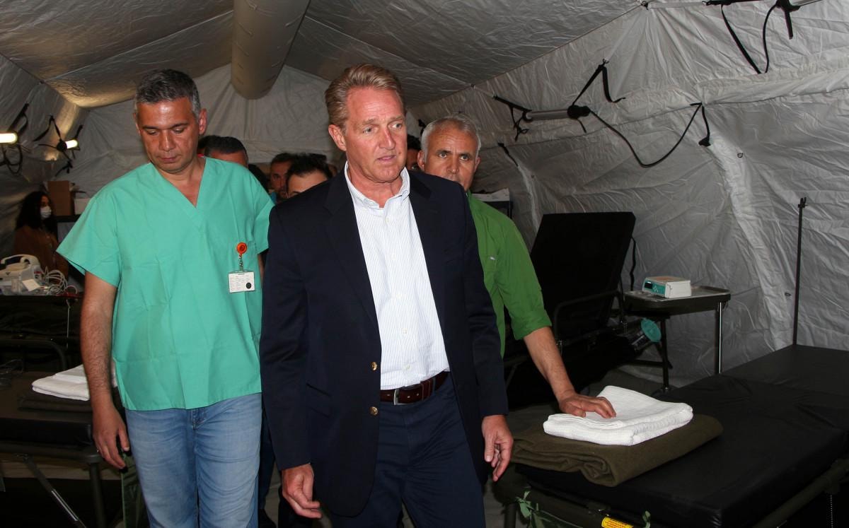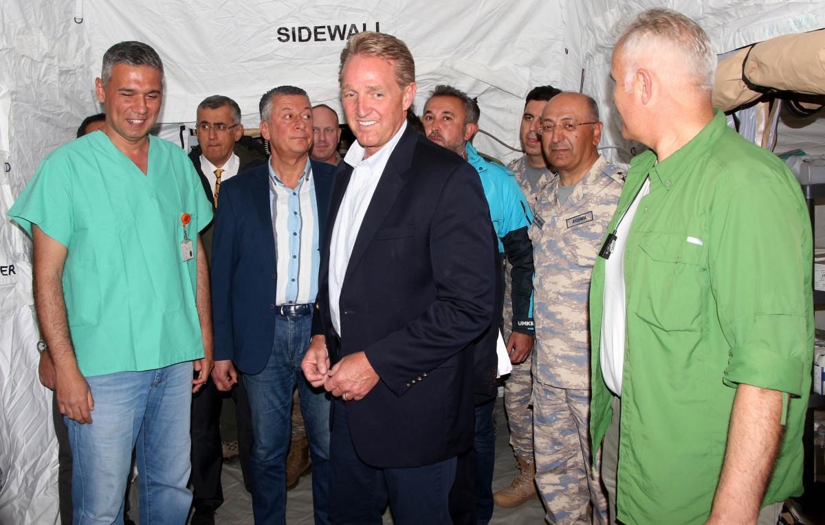 Acil servisi ve 2 ameliyathaneyle 1 yoğun bakım ünitesi olan sahra hastanesinin Sağlık Bakanlığı'na devri için ABD'nin Ankara Büyükelçisi Jeffry L. Flake bölgeyi ziyaret etti.