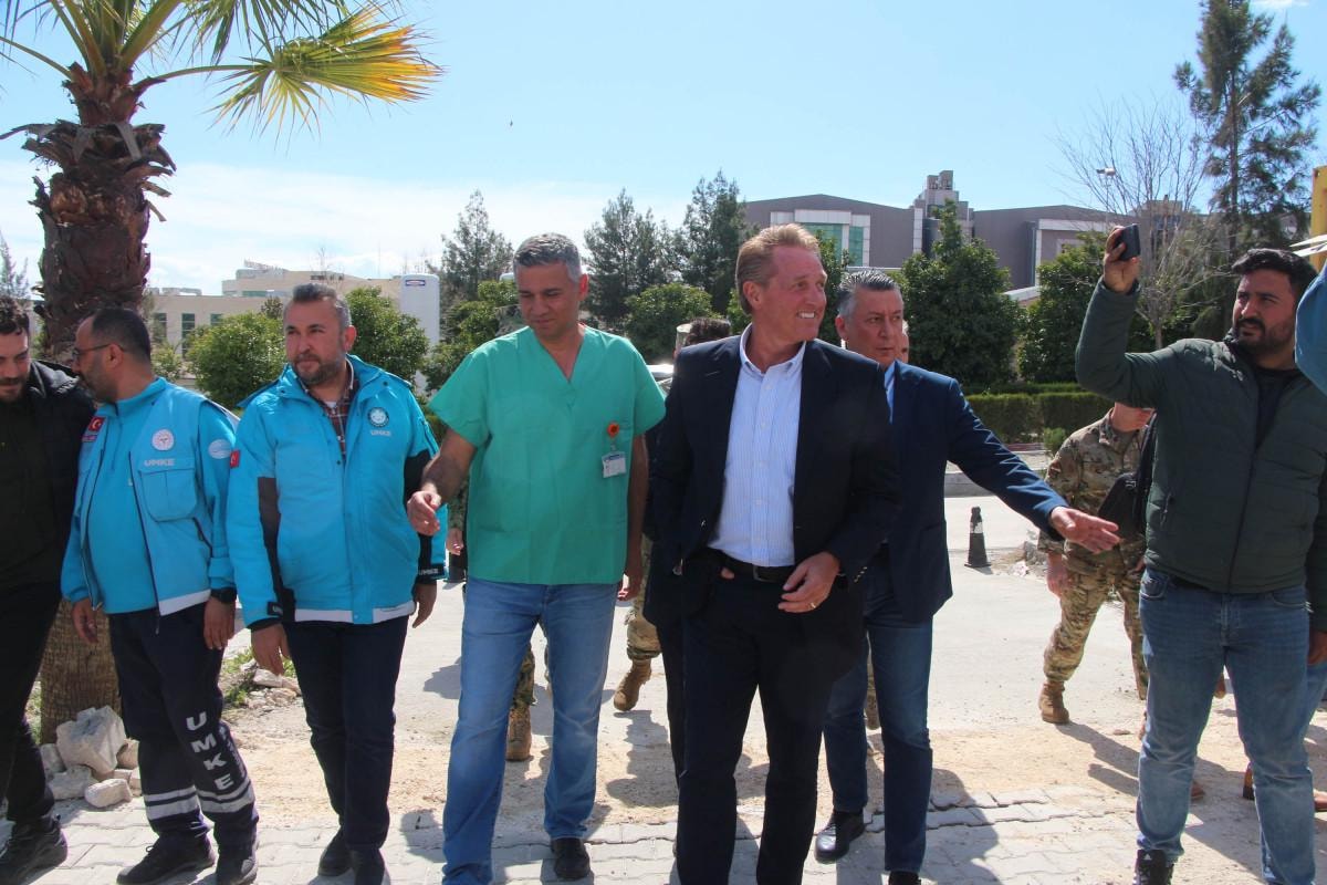 Hastaneyi gezip çalışmalar hakkında bilgi alan Flake, yaptığı değerlendirmede, "Geçtiğimiz aralık ayında eşimle birlikte Hatay'a gelip, buradaki güzel insanları görme imkanı bulmuştuk. Bu noktada özellikle bu depremin sonrasında ortaya çıkan yıkıntı ve yaşananlardan çok büyük üzüntü duyduk.