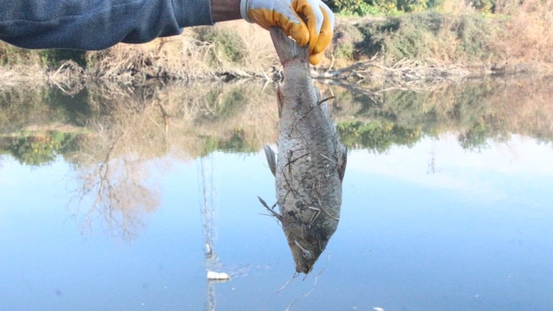 Bölgede binlerce balığın öldüğü ve kıyıya vurduğu görülürken, tarımsal amaçlı kullanılan suyla narenciye bahçeleri de sulanıyor.