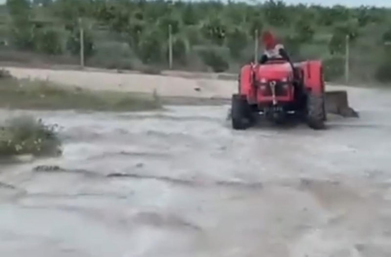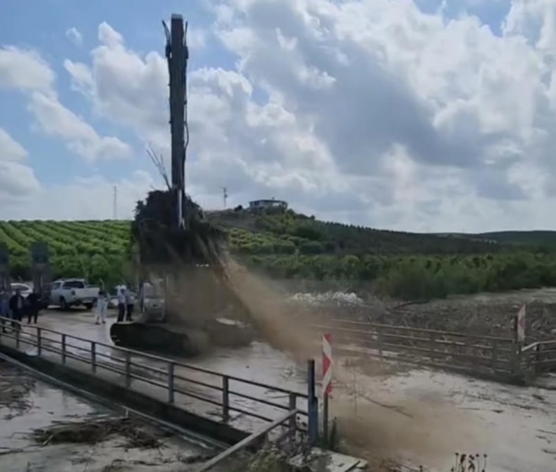 Yağış sebebiyle taşan dereler de tarım arazilerine aktı. Görevliler iş makineleriyle dereyi temizlemek için çalışma başlattı.