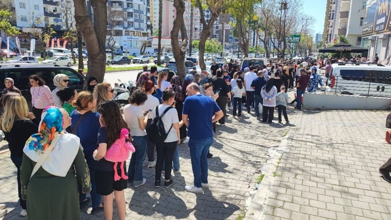 İndirimi duyanlar saatler önce iş yerinin önünde uzun kuyruklar oluşturdu.