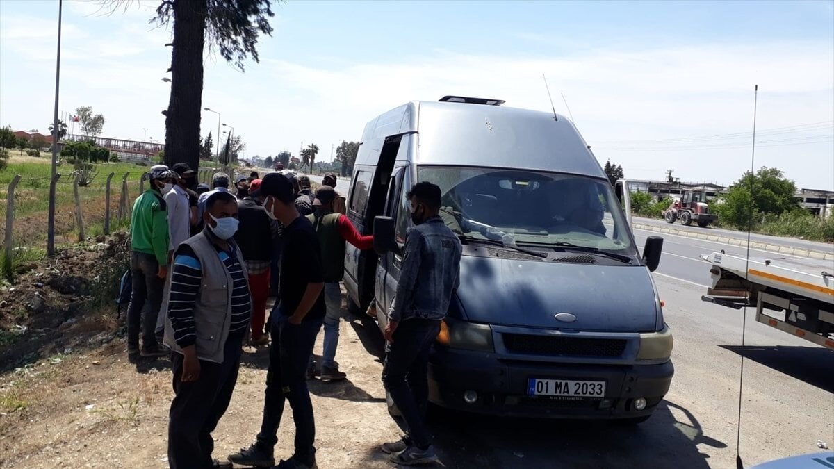 İnceleme yapan ekipler, araçta balık istifi yolculuk yapan tarım işçilerini tek tek indirdi.