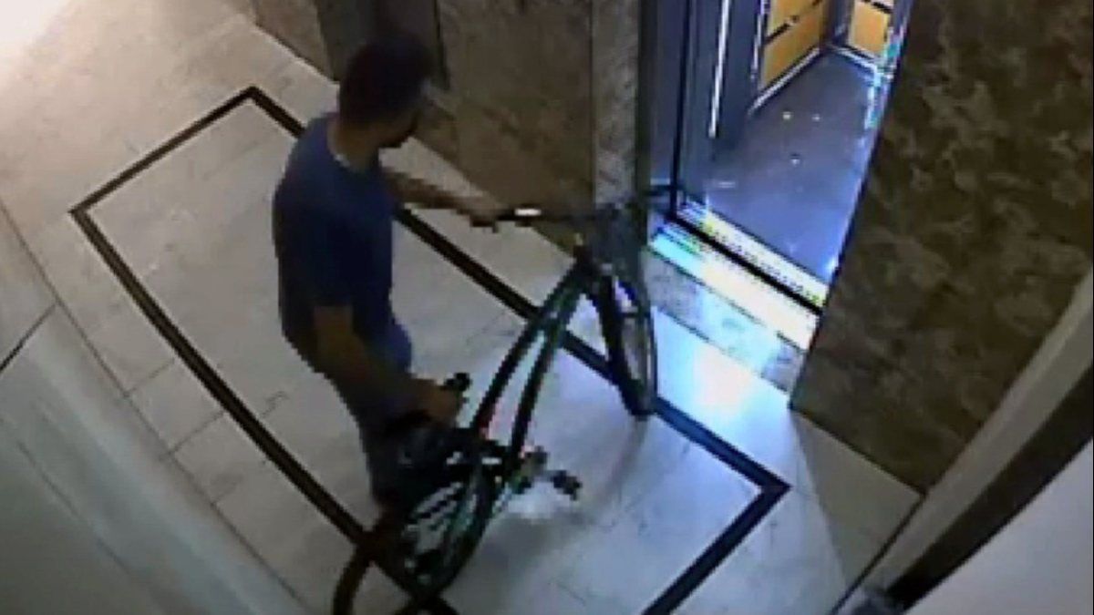 Yüzünü cerrahi maskeyle gizleyip hırsızlık için apartmanlara giren Emre E.’nin, çaldığı bisikletlere binip olay yerinden kaçtığı anlar güvenlik kameralarına yansıdı.