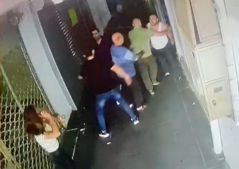 Adana'da 2 erkeğin pasajın içerisinde bulunan dükkanın önünde tartıştıkları kadını dövdüğü anlar kameraya yansıdı..