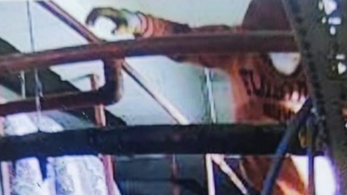 Alışveriş merkezinin havalandırma boşluğunda gizlenen şüpheli buraya konumlandırılan güvenlik kamerasına yakalandı ancak hızlı bir şekilde konumunu değiştirdi.