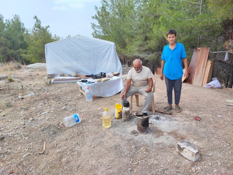 Çocukla birlikte çadır alıp, ormanlık alana çadır kurup, burada yaşamaya başladık. Hava çok sıcak, burada yaşamak çok zor oluyor ama mecbur kaldık." dedi.