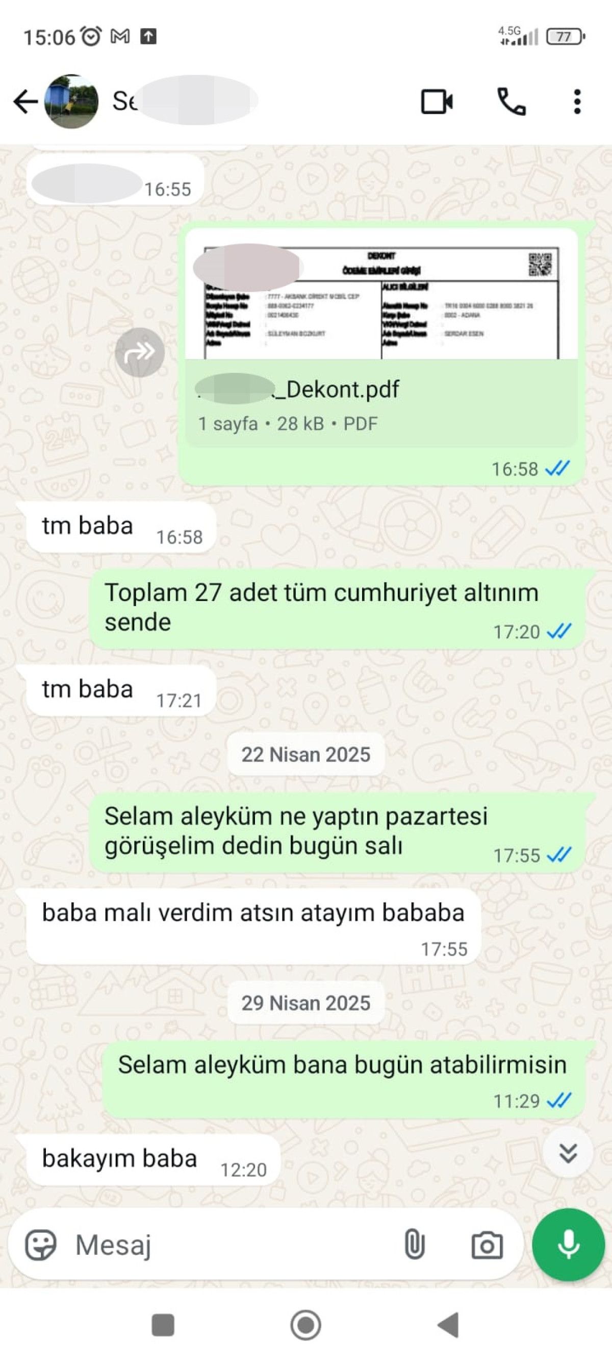 Bu kişi 30 yıldır tanıdığımız, aile dostumuzdur. Aramızda bugüne kadar hiçbir sorun yaşanmadı. Kendi kardeşim böyle bir işi yapar, bu kişi ise asla yapmazdı; o kadar güveniyorduk. Bana gelip, ‘Altın ve paran bende kalsın’ diyerek emanet aldı. Ancak şimdi kendisini arıyoruz ama bulamıyoruz. Eşi, dostu ve akrabaları da sahip çıkmıyor. Eşini ve çocuklarını mahallede bırakıp kaçtı. Mahallede birçok kişiyi dolandırdı; bildiğim kadarıyla 70-80 kişiyi dolandırdı. Bu olayın ortaya çıkmasını istiyoruz. Yetkililerden yardım bekliyor, şahsın bulunmasını talep ediyoruz. Büyük bir stres altındayız, büyük paralarımız gitti. Bütün mahalleden, akrabalarından aldığı paralarla kayboldu.