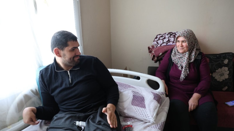 Adana'da 30 yaşındaki Okan Ersin, 6 yaşındayken bahçede oynadığı sırada boynuna batan bir tel nedeniyle bedensel ve zihinsel engelli kaldı.