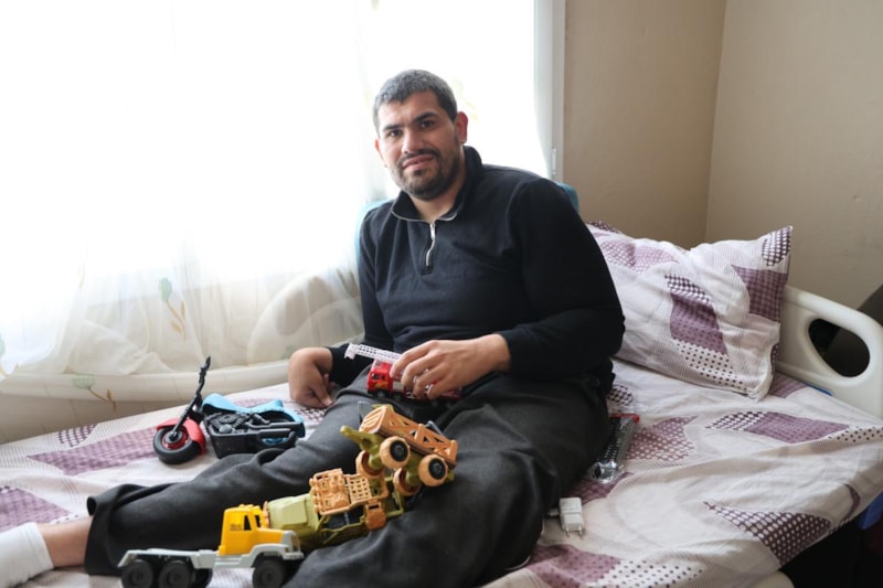 Yatağa bağımlı yaşayan Okan Ersin, en büyük keyfinin oyuncakları olduğunu söyledi. Ersin "Jandarma ve polis arabaları gelince çok seviniyorum. En çok kamyon ve kepçe seviyorum. Annemle oturup televizyon izliyorum. Yürümek istiyorum, gezmek istiyorum." diye konuştu.