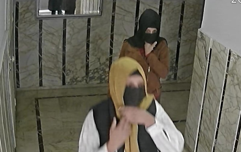 Öte yandan birlikte hareket eden kadınların apartmanlardan çıkış anları ise saniye saniye güvenlik kamerasına yansıdı.