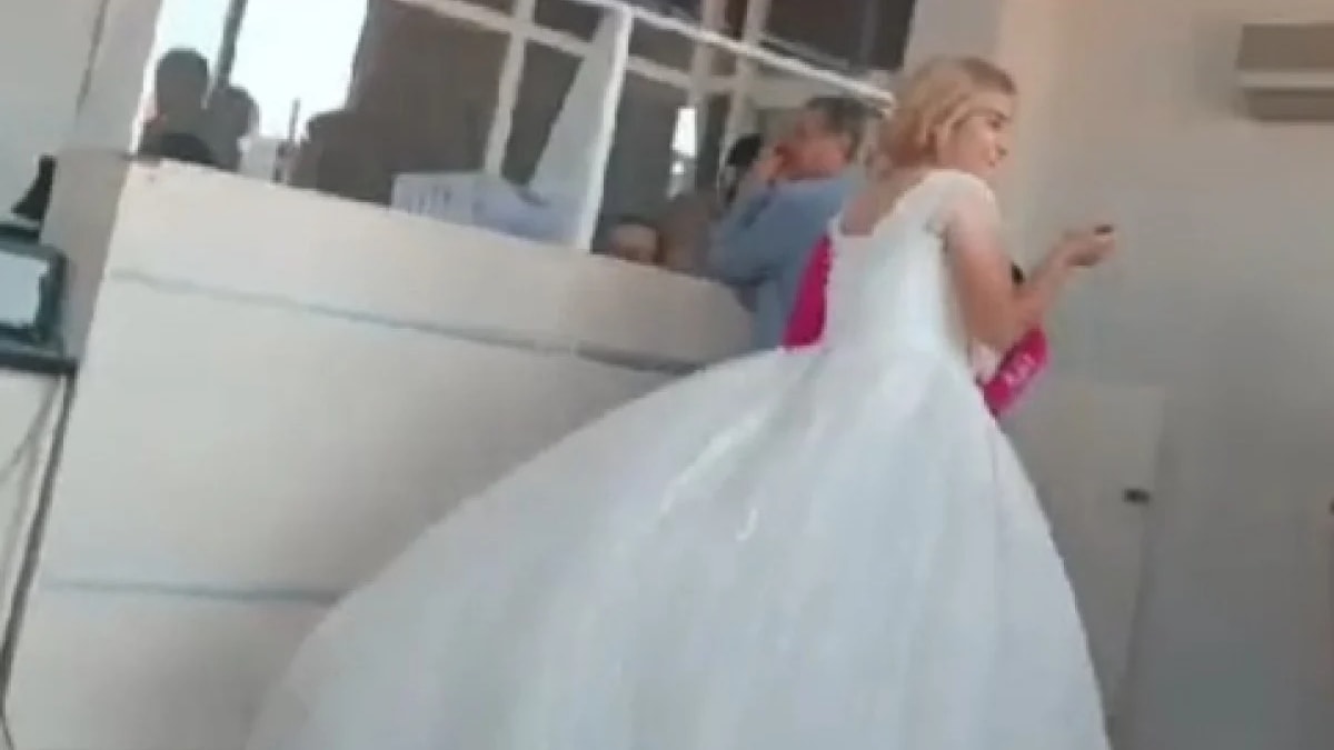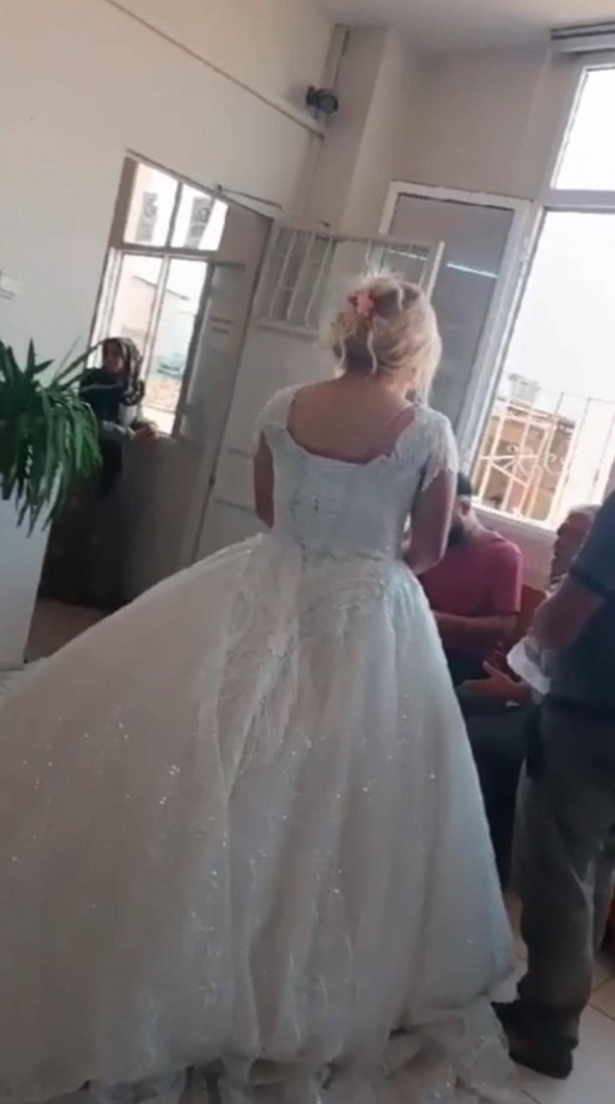 Gelin, akrabalarıyla birlikte dakikalarca işlemlerin tamamlanmasını bekledi.