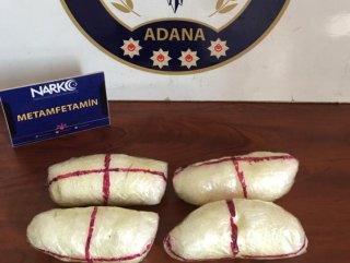 Köpeğin aracın sürücü koltuğuna tepki vermesi üzerine yapılan incelemede, buraya gizlenmiş 4 pakette 473 gram metamfetamin ele geçirildi.