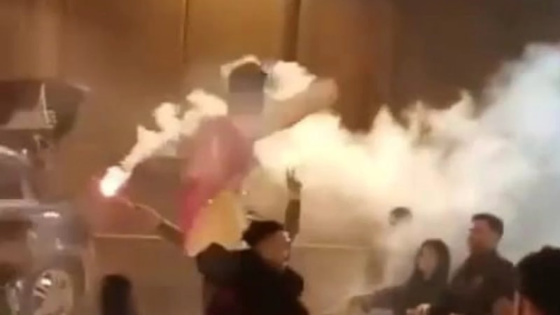 Hem kendi canlarını hem vatandaşın canını tehlikeye atan asker eğlencelerinde yeni bir görüntü kaydedildi.