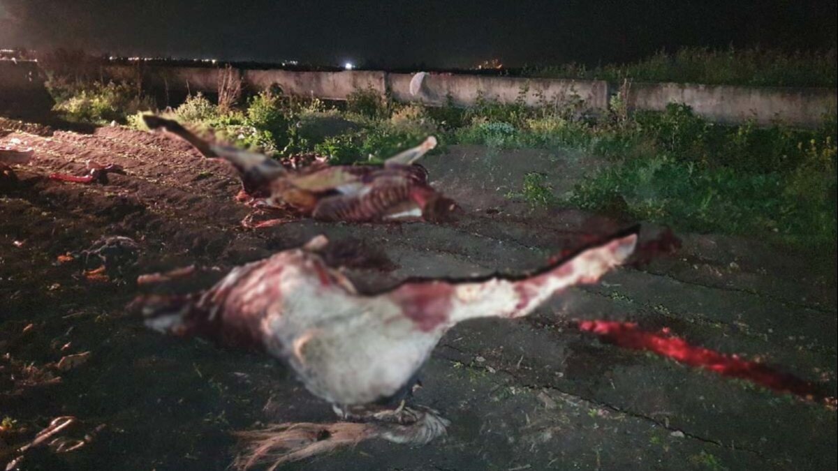 Adana'nın merkez Yüreğir ilçesi Koza Mahallesi'nde gecenin karanlığında tarla kenarında at kesildiğini görenler, durumu polise bildirdi.