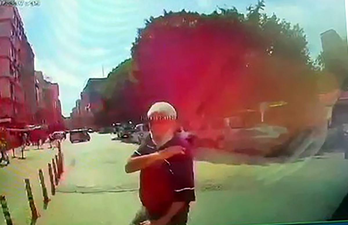 Görüntülerde, kazanın ardından yolcuların panikle bağırdığı ve sürücünün aşağı indiği anlar yer aldı.