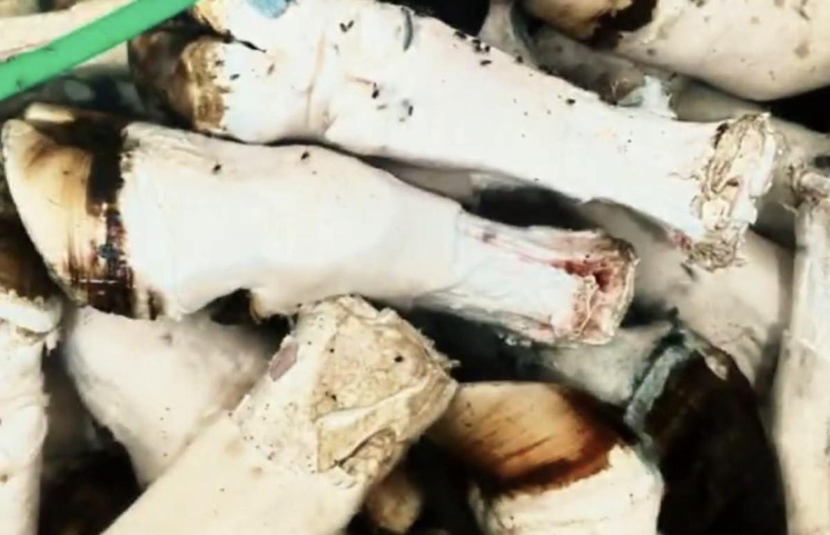 İşletmede 5 bin 140 kilogram paça, 100 kilogram işlenmek üzere hazırlanan bağırsak ve 50 metre kurutulmuş bağırsak ele geçirildi.