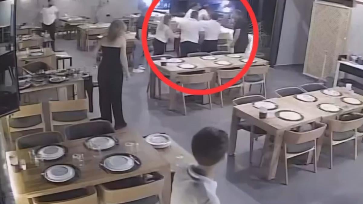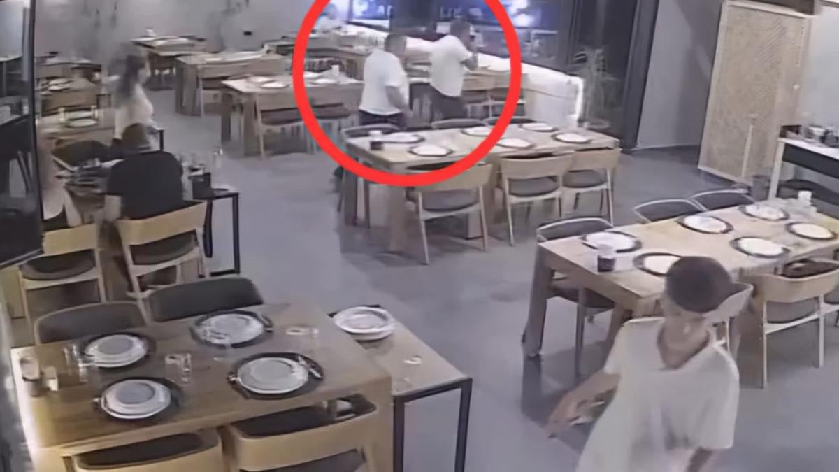 Olay anı ise restoranın güvenlik kamerasınca görüntülendi.