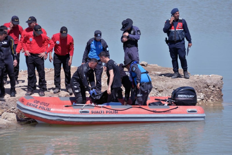 İhbarla bölgeye jandarma ve AFAD ekipleri sevk edildi. Timi'nin terlikleri sulama kanalı kenarında bulunurken, iz arama köpeği de su kenarına tepki verdi.